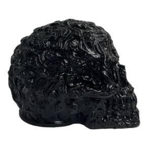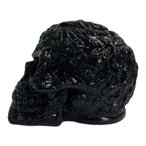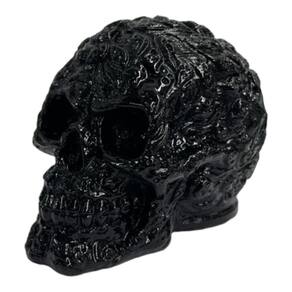 Escultura Crânio Relevos Preto em Resina