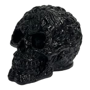 Escultura Crânio Relevos Preto em Resina Escultura Crânio Relevos Preto em Resina