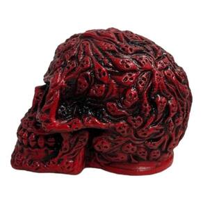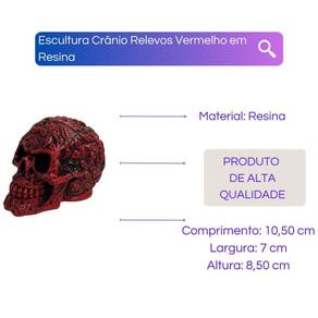 Escultura Crânio Relevos Vermelho em Resina Escultura Crânio Relevos Vermelho em Resina