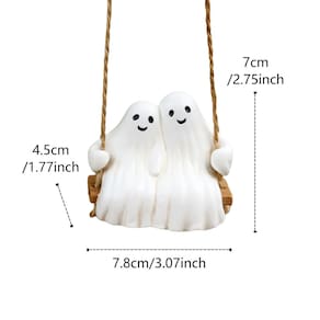 Material: resina Tamanho: 7,8* 4,5* 7 cm Peso: 120 g ['Adorable Couple Ghost Design: apresenta dois fantasmas sorridentes sentados juntos em um balanço, simbolizando companheirismo e aconchego, ao mesmo tempo em que adicionam um toque divertido de Halloween ao seu espaço ao ar livre. ', 'Material de resina de alta qualidade: feito de resina durável com acabamento liso pintado à mão, resistente às intempéries e ao desbotamento, adequado para decoração interna e externa. ', 'Compacta e leve: Medindo aproximadamente 7,8 × 4,5 × 7 cm e pesando 120 g, esta pequena escultura suspensa é fácil de exibir em árvores, varandas ou cercas de jardim. ', 'Charming Halloween Touch: perfeito para decoração com tema de Halloween ou outono, trazendo uma atmosfera divertida e aconchegante ao seu jardim, pátio ou varanda. ', 'Ornamento decorativo versátil: ideal para pendurar em galhos de árvores, paredes ou janelas, esta linda estátua fantasma combina facilmente com vários ambientes de casa e quintal.']