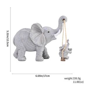 Material: resina Tamanho: consulte a foto Peso: 421 g ['Design emocionante para mãe e bebê: apresenta um elefante cinza segurando um elefante bebê em miniatura em um balanço, simbolizando cuidado e conexão, perfeito para criar uma cena alegre no jardim. ', 'Artesanato detalhado em resina: feita de resina durável com textura esculpida, esta escultura resiste a elementos externos, mantendo um charme realista e padrões intrincados. ', 'Ornamentos de jardim versáteis: ideais para ambientes de pátio, cantos de gramado, vitrines de varanda ou prateleiras internas, aprimorando os espaços com uma figura divertida e elegante da vida selvagem. ', 'Estátua decorativa estável: com uma estrutura sólida e uma pose realista, esta estátua de elefante pode ficar segura em várias superfícies, tornando-a uma peça central de destaque entre os detalhes decorativos. ', 'Figura artística de animal: adequada para jardins de fadas, paisagismo temático ou decoração de interiores, trazendo personalidade e aconchego a qualquer ambiente por meio de um design expressivo.']
