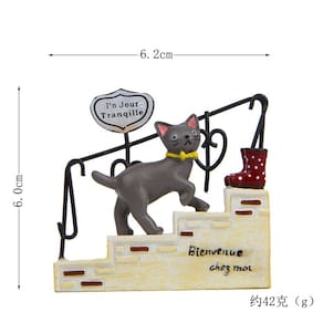 Material: Resina Tamanho: consulte a imagem Peso: 50 g ['Charming Cat DesignApresenta um gato brincalhão subindo escadas com uma bota vermelha e uma cerca de ferro, criando uma cena artística e extravagante perfeita para realçar o jardim ou as exposições internas. ', 'Artistic Details inclui detalhes em texto em francês e um design delicado de corrimão, adicionando uma estética de inspiração europeia ao seu jardim de fadas, prateleira ou arranjo de plantas. ', 'Artesanato em resina durávelFeito de resina de alta qualidade com elementos de ferro, este boneco é durável e duradouro, adequado para decoração interna e externa. ', 'Decoração versátilIdeal para paisagens de musgo, jardins em miniatura, pátios, mesas de escritório ou prateleiras domésticas, trazendo personalidade e charme a qualquer ambiente. ', 'Compacto e leveFácil de colocar e reposicionar, tornando-o perfeito para criar cenas de contar histórias em terrários, vasos ou vinhetas decorativas']