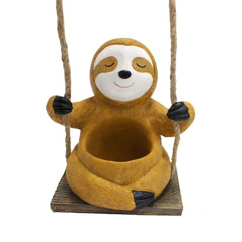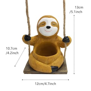 Material: Resina Tamanho: 12* 10,7* 13 cm Peso: 389 g ['Relaxed Sloth Design — Apresenta uma preguiça sorridente sentada em um balanço com um porta-vasos embutido, criando um toque aconchegante e alegre para seu jardim ou pátio. ', 'Suporte de plantador funcional — O centro oco pode conter pequenas plantas, suculentas ou flores decorativas, combinando estilo com uso prático. ', 'Material de resina de alta qualidade — Feito de resina premium à prova d'água e resistente às intempéries para exibição externa durável durante todo o ano. ', 'Design fácil de pendurar — vem com uma corda forte para pendurar rapidamente em árvores, varandas, varandas ou cercas, adicionando charme instantâneo à sua decoração externa. ', 'Decoração de jardim versátil - ideal para pátios, pátios e espaços internos, esta divertida estátua de preguiça traz uma atmosfera pacífica e extravagante a qualquer ambiente']