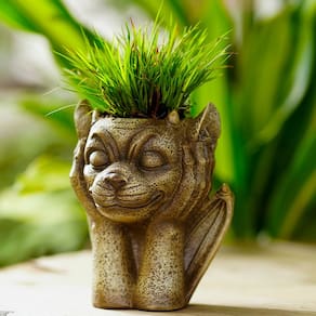 Material: Resina Peso: 400 g Tamanho: 15 x 15 x 20 cm Design de gárgula gótica — Vaso de flores exclusivo em forma de gárgula com expressão facial detalhada, adicionando mistério e charme gótico a qualquer espaço. Material de resina de alta qualidade — Feito de resina durável, resistente às intempéries e leve, garantindo uso duradouro em ambientes internos e externos. Perfeito para suculentas e plantas pequenas — Vasos compactos ideais para suculentas, cactos, ervas ou flores, realçando a vegetação com estilo artístico. Decoração interna e externa — Ótima para desktops, varandas, pátios, jardins ou festas com tema gótico, combinando a função de plantio com uma decoração criativa de esculturas. Dimensões do produto — mede 15x15x20cm, pesa 400g; tamanho conveniente para colocar em parapeitos de janelas, mesas ou jardins.