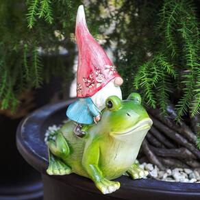 Material: Resina Tamanho: 13 × 9,5 × 18 cm Peso: 300 g ['Encantadora escultura de gnomo e sapo: esta decoração de jardim extravagante apresenta um lindo gnomo montando um sapo, criando uma atmosfera divertida e mágica para seu espaço ao ar livre. ', 'Material de resina durável: feita de resina de alta qualidade, esta estátua de gnomo e sapo foi projetada para resistir a elementos externos, mantendo cores vibrantes e detalhes finos. ', 'Ideal para decoração de jardins e pátios: perfeita para adicionar um toque de diversão a jardins, pátios, canteiros de flores e quintais, esta estatueta de gnomo exclusiva adiciona personalidade e charme ao seu ambiente externo. ', 'Detalhes pintados à mão: cada figura é cuidadosamente pintada à mão, apresentando características detalhadas do gnomo e do sapo, tornando-a uma peça de destaque em qualquer coleção ao ar livre. ', 'Peça decorativa versátil: esta escultura deliciosa é perfeita para criar um ponto focal exclusivo em seu jardim ou quintal, ou como parte de uma exibição externa ou interna extravagante.']