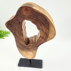 Design único e exclusivo: cada peça é feita a partir de tronco natural de madeira, com detalhes únicos Combinação de materiais: madeira natural com base de metal para um contraste sofisticado Estilo rústico e contemporâneo: ideal para criar um ambiente acolhedor e moderno Versátil na decoração: pode ser colocada em salas, escritórios, halls ou estantes Durabilidade: materiais de alta qualidade, com boa resistência