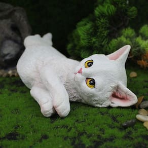Material: Resina Tamanho: 26,5 × 2,5 × 7 CM Peso: 420 g ['Design encantador: apresenta uma escultura realista de gato branco, lindamente detalhada em uma posição relaxante, perfeita para adicionar um toque extravagante ao seu jardim ou casa. ', 'Material de resina durável: feito de resina de alta qualidade, este enfeite de jardim é robusto, resistente às intempéries e projetado para uso externo de longa duração. ', 'Detalhamento realista: pintado à mão com grande atenção aos detalhes, a expressão divertida e a textura realista do pelo do gato o tornam uma adição atraente a qualquer ambiente. ', 'Decoração versátil: ideal para jardins, gramados, pátios ou até mesmo como uma peça de destaque exclusiva para sua sala de estar ou mesa de escritório. Esta estátua de gato se encaixa perfeitamente em vários espaços. ', 'Tamanho perfeito: com dimensões de 26,5 × 2,5 × 7 cm, é uma peça de decoração perceptível, mas não impressionante, que adiciona charme e diversão a qualquer local.']