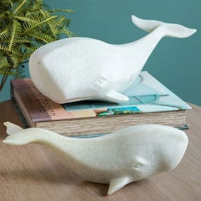 Escultura Decorativa Baleia em Resina e Quartzo Branco Cód: SS0297