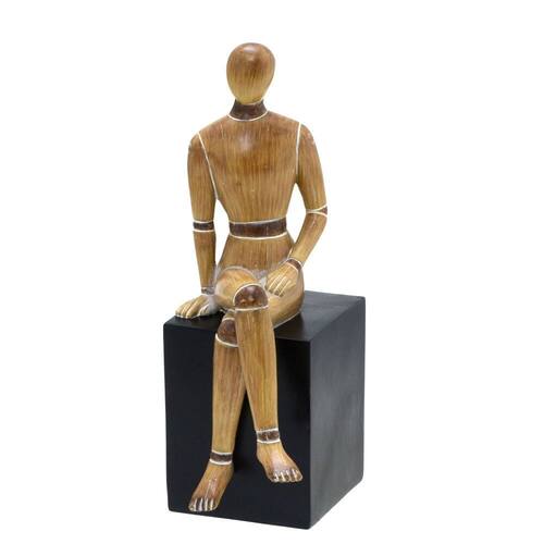 Cód: 15394-PL Escultura Decorativa Boneco em Resina Material: Resina Cor: Amadeirado e Preto Dimensões: 20x12x7cm (AxCxL)