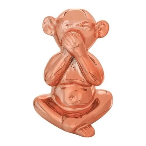 Escultura Decorativa Macaco Cerâmico Rose Gold (Não Falo) 10x10cm