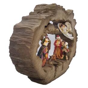 Escultura Decorativa Presépio Iluminada Resina Rústica 25cm -