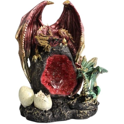 Traga para sua decoração a atmosfera dos tempos medievais, com essa belíssima peça em resina de dois dragões protegendo o cristal das eras. Imagens meramente ilustrativas Marca: Não Informado