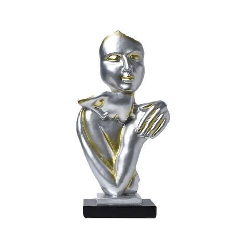 Material: Resina Tamanho: 10x7x27cm Peso: 450g Design abstrato elegante — Esta escultura apresenta uma figura estilizada moderna com braços cruzados e um rosto expressivo, transmitindo elegância e sofisticação artística. Elegante acabamento prateado e dourado — Os tons metálicos suaves de prata e ouro criam uma aparência refinada e luxuosa, ideal para decoração de interiores sofisticada. Construção durável em resina — Feito de resina de alta qualidade com uma superfície lisa e polida, este ornamento combina durabilidade com leveza e conveniência. Tamanho compacto da tela — Medindo 10x7x27cm e pesando 450g, esta escultura se encaixa facilmente em armários de TV, prateleiras ou mesas de console, adicionando interesse visual sem ocupar muito espaço. Uso decorativo versátil — Perfeito para decorar salas de estar, escritórios ou estantes de livros, este ornamento de figura aprimora os espaços modernos com charme artístico e um toque de decoração abstrata.