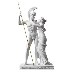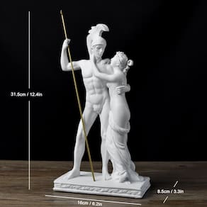 Material: Resina Tamanho: 16x8,5x31,5 cm Peso: 540g Tema de arte mitológica — Esta escultura retrata Ares, o deus grego da guerra, em uma pose dinâmica com uma figura feminina, representando força, paixão e mitologia. Artesanato em resina de alto detalhe — finamente esculpido com linhas anatômicas claras, armadura texturizada e cortinas esvoaçantes, oferecendo realismo artístico ideal para esboçar e estudar. Estilo de decoração nórdico elegante — Com acabamento em resina branca fosca, a estátua complementa a estética minimalista e neoclássica da decoração de interiores. Opções versáteis de posicionamento — Adequadas para salas de estar, entradas, salas de aula de arte ou como uma peça central impressionante em qualquer ambiente artístico. Tamanho ideal para exibição — mede 16x8,5x31,5 cm e pesa 540 g, o que o torna estável para colocação em prateleiras, mesas ou pedestais.