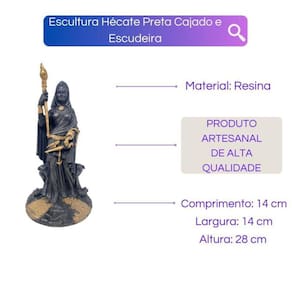 A nossa Escultura Hécate Preta Cajado e Escudeira da Bialluz em resina trará boas energias, bons fluídos e harmonia para sua casa. É ideal para colocar em seu altar ou completar a decoração de seu ambiente. Esculturas são itens especiais e decorativos, é um recurso que dá um toque a mais em qualquer ambiente, tem um valor espiritual e sentimental. Você pode enfeitar com um estilo próprio com muito bom gosto o seu altar ou ambiente.