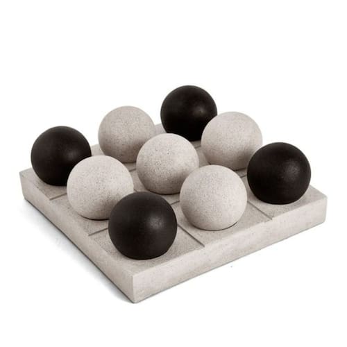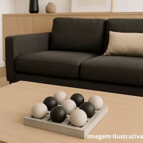 Uma versão minimalista e estilizada do tradicional Jogo da Velha (Tic-Tac-Toe) ou algum tipo de jogo de estratégia baseado em posicionamento de peças. Os botões arredondados sugerem que as peças podem ser movidas ou removidas, o que poderia indicar um jogo de lógica, talvez semelhante ao jogo de Solitário Peg, onde você pula peças para removê-las até sobrar apenas uma. DIMENSÕES: Altura: 9cm Comprimento:25,5cm Material: PoliresinaCONTEÚDO NA EMBALAGEM:1 Unidade