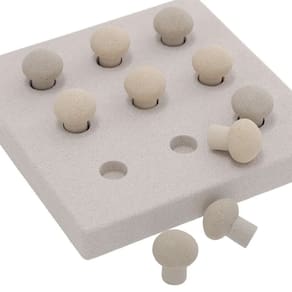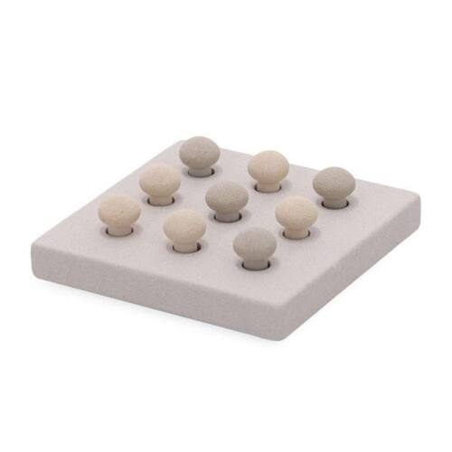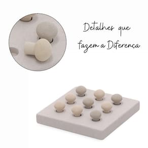 Uma versão minimalista e estilizada do tradicional Jogo da Velha (Tic-Tac-Toe) ou algum tipo de jogo de estratégia baseado em posicionamento de peças. Os botões arredondados sugerem que as peças podem ser movidas ou removidas, o que poderia indicar um jogo de lógica, talvez semelhante ao jogo de Solitário Peg, onde você pula peças para removê-las até sobrar apenas uma. DIMENSÕES: Altura: 6cm Comprimento:22cm Largura: 22cm Material: PoliresinaCONTEÚDO NA EMBALAGEM:1 Unidade
