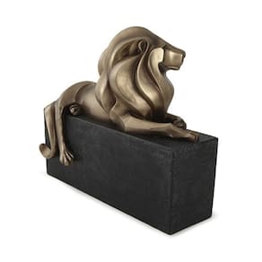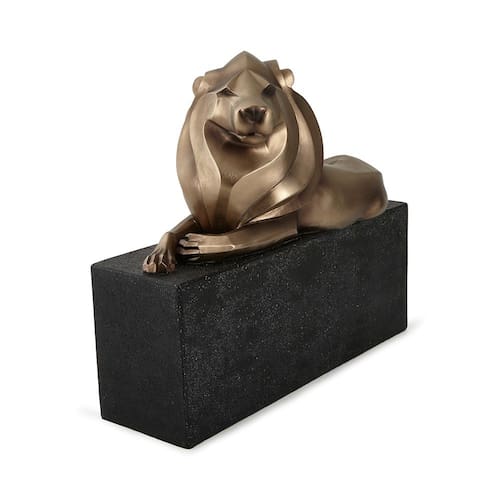Com traços modernos e acabamento sofisticado, esta escultura de leão traz imponência e elegância para qualquer ambiente. Produzida em poliresina com efeito metálico bronze, a peça exibe um leão de formas estilizadas, deitado sobre uma base retangular preta que realça ainda mais sua presença decorativa.