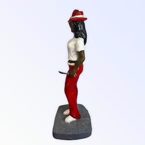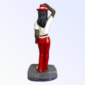 Escultura Maria Navalha camisa branca e calça vermelha 16 cm em resina