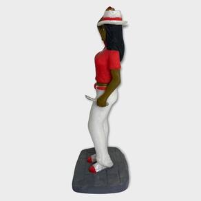 Escultura Maria Navalha camisa vermelha e calça branca 16 cm em resina