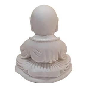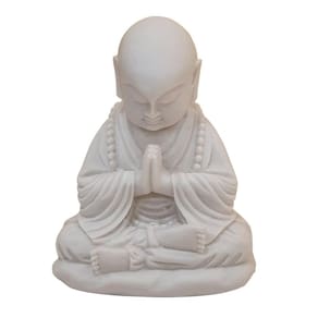 Escultura Monge Oração de Pó de Mármore Branco 16cm Escultura Monge Oração de Pó de Mármore Branco 16cm