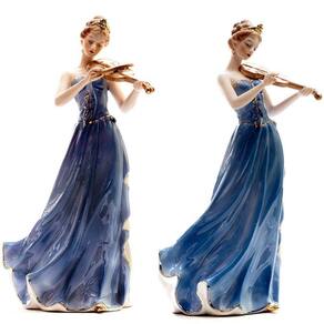 Feita em porcelana de alta qualidade, a dama tocando violino é uma peça que transmite elegância e paixão pela música.
