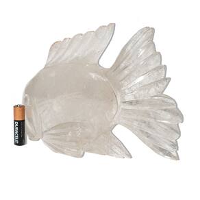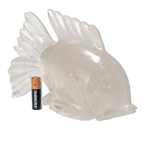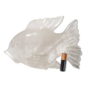 Peixe em Quartzo Cristal – Clareza, Purificação e Conexão Espiritual na Sua Decoração O peixe, símbolo de fluidez, renovação e sabedoria intuitiva, representa a capacidade de atravessar as águas da vida com leveza e consciência. Esculpido artesanalmente em Quartzo Cristal natural, esta escultura combina pureza visual e profundidade simbólica, sendo perfeita para ambientes que buscam luz, harmonia e elevação energética. Benefícios do Quartzo Cristal: Considerado o “regeneradr universal”, o Quartzo Cristal é uma das pedras mais valorizadas na litoterapia por sua versatilidade e poder amplificador. Ele favorece:\nClareza mental e foco\nPurificação energética de pessoas e ambientes\nAmplificação de intenções e vibrações espirituais\nAlinhamento dos chakras e expansão da consciência\nA escultura de peixe em Quartzo Cristal é ideal para espaços de meditação, práticas espirituais, ambientes terapêuticos ou qualquer local onde se deseje promover paz, luz e equilíbrio energético. Também é uma peça especial para presentear com intenções de regeneração e elevação espiritual. Detalhes da Escultura: Pedra: Quartzo Cristal NaturalFormato: Peixe (artesanato manual)Acabamento: Polido com brilho suave e textura translúcidaCor: Transparente com possíveis inclusões naturais, veios ou nuvens internasTamanho Aproximado: 26 x 14cm (podendo variar)Peso Médio: 1,6kgOrigem: Cristais de Curvelo – MG, Brasil Cuidados: Limpar com pano seco ou levemente umedecido. Pode-se aplicar óleo mineral com moderação para realçar o brilho natural da pedra. Observação Importante: Cada escultura é única, feita com pedra natural. Variações de transparência, inclusões internas e pequenos veios fazem parte da autenticidade e beleza do Quartzo Cristal. As imagens são ilustrativas e representam o padrão de qualidade do produto. Marca: Não Informado