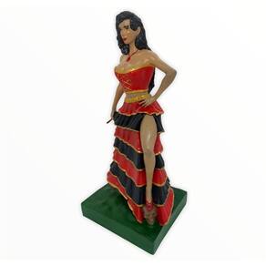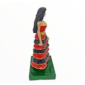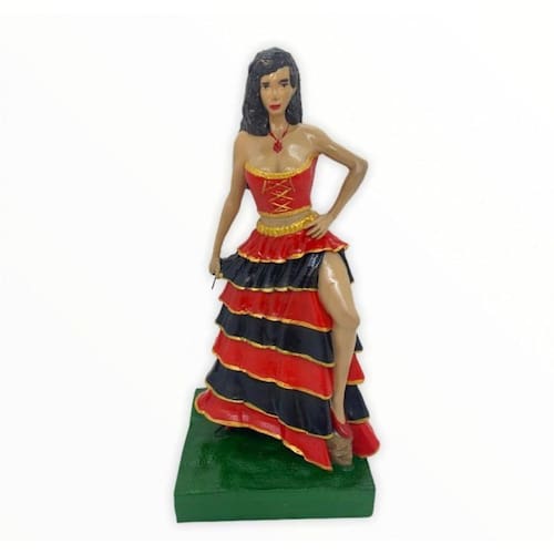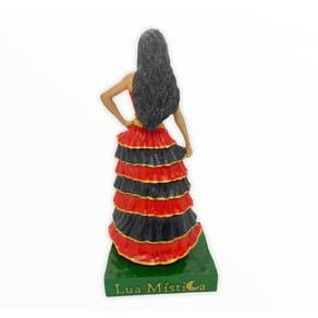 Escultura Pomba gira preta e vermelha 24 cm com crânio no pé 7 saias em resina