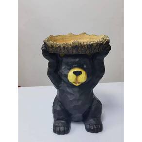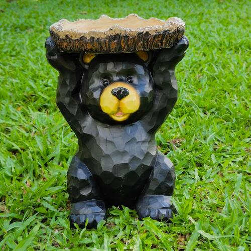 Decoração de jardim Sitting Bear Holding Bird Bath