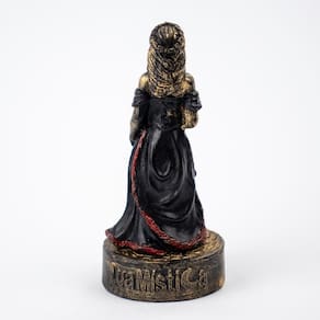 Escultura Rosa Caveira Preta e Vermelha Vintage Resina 10 cm