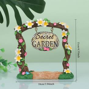 Material: Resina Tamanho: 11 × 10 × 4 cm Peso: 110 g ['• Design encantador de jardim secreto: com uma placa em estilo giratório com texto “Jardim Secreto” e trepadeiras florais, este ornamento cria um efeito de entrada extravagante em paisagens em miniatura ou exibições ao ar livre. ', '• Detalhe de resina artesanal: feita de resina durável, a escultura inclui flores vivas, folhas e texturas de madeira rústica, perfeitas para realçar jardins de fadas, cenas de bonsai ou pátios. ', '• Toque decorativo versátil: ideal para terrários, vasos de plantas, tanques de peixes ou cantos de quintais, ele adiciona um toque de fantasia e narrativa a qualquer arranjo de jardim. ', '• Compacto e leve: fácil de colocar em prateleiras, canteiros de jardim ou expositores de mesa, o boneco se encaixa perfeitamente em configurações de decoração interna e externa. ', '• Melhora a atmosfera do jardim: perfeito para criar cenas temáticas, esse ornamento adiciona personalidade e charme a pátios, varandas, caminhos ou projetos de jardins em miniatura.']