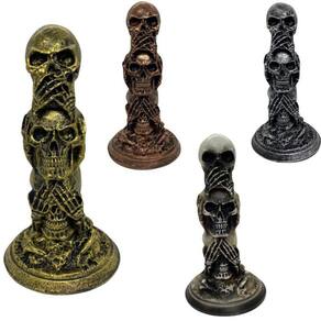 Escultura Toten 3 Crânios 12,5cm em Resina - Selecione a Cor Cor: Cobreado Escultura Toten 3 Crânios Sabedoria 12,5 cm em Resina