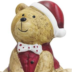 Um toque especial à sua decoração natalina com esta adorável escultura de ursinho! Medindo 19 cm, ele é perfeito para iluminar qualquer ambiente, criando uma atmosfera acolhedora e mágica. A base em formato de presente com glitter e a luz LED suave adicionam um charme extra, fazendo deste ursinho o detalhe que faltava para deixar sua celebração ainda mais encantadora. Seja como parte da sua decoração natalina ou como um presente memorável, ele é uma verdadeira expressão do Natal. Transforme seu lar em um lugar cheio de amor e alegria!
