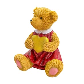 Escultura Urso Resina Menina Coração Sentado 13Cm