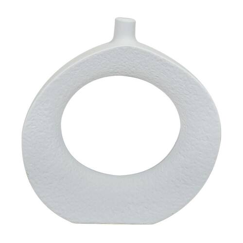 Transforme a decoração de seu ambiente com esta elegante escultura decorativa de cerâmica branca com textura, perfeita para quem busca sofisticação e estilo. Com um design minimalista e formato redondo, esta peça se destaca por possuir um design vazado, que agrega leveza e modernidade ao seu visual. Mais do que um simples objeto decorativo, é uma verdadeira obra de arte que transforma qualquer ambiente.
