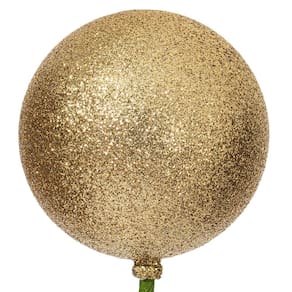 Palito de enfeite de bola de glitter dourado Vickerman de 3" x 18". Enfeite de 3 polegadas em um bastão de 18 polegadas.