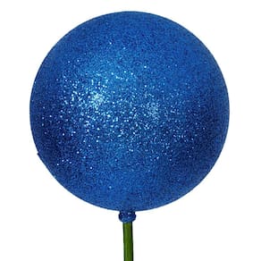 Vickerman 4" x 18" Blue Glitter Ball Ornament Stick 6/bolsa. Enfeite de 4 polegadas em um bastão de 18 polegadas.