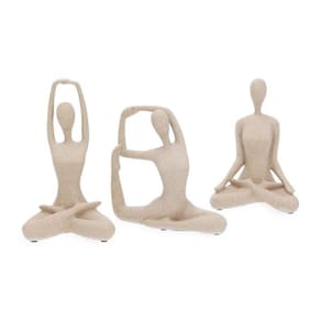 Essas esculturas capturam o espírito sereno das práticas de yoga, sendo uma ótima representação do equilíbrio e da paz interior promovidos por essa prática, que também tem ganhado popularidade no Brasil nos últimos anos. A imagem mostra a escultura representando a figura humana em posições de ioga em postura distinta. As estatuetas são feitas com material em tons neutros e minimalistas.
