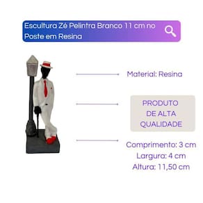 Escultura Zé Pelintra no Poste 11 cm em Resina Cor: Branco Escultura Zé Pelintra no Poste 11 cm em Resina