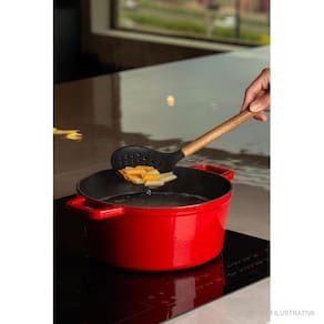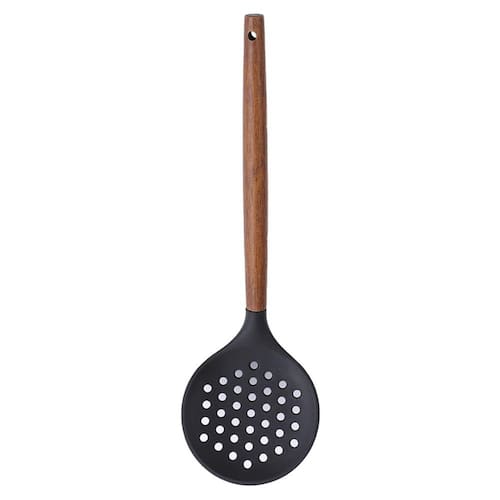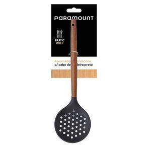 A Escumadeira de Silicone Preto Paramount Creme Cabo de Madeira 33 cm é uma peça elegante e funcional, ideal para retirar alimentos de líquidos com facilidade e precisão. Com 33x10x6 cm, seu design oferece conforto e controle durante o uso.