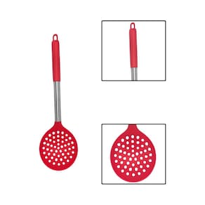 Escumadeira Silicone Cabo Aço Inox Vermelha Linha Facile