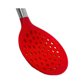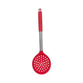 Escumadeira Silicone Cabo Aço Inox Vermelha Linha Facile