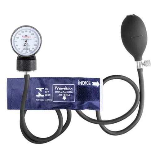 Aparelho de pressão infantil premium Maior precisão. Para uso doméstico e Hospitalar. AAdaptávelnha Estojo. Características: - Possui selo do INMETRO - Manguito e pêra em pvc - Braçadeira para aparelho de pressão em nylon - Fecho em tiras aderentes - Braçadeira para circunferência de braço de 10 à 18 cm (1 à 7 anos). - AAdaptávelnha estojo para viagem Anvisa: 80275310022