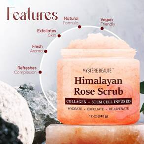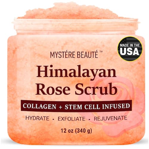 - Uma massagem de rosas - O esfoliante de sal rosa do Himalaia puro Mystere Beaute para el cuerpo é formulado com ingredientes naturais poderosos como óleo de rosa, óleo de amêndoa doce, óleo de lavanda e óleo de coco. O óleo de rosa promove um tom de pele uniforme e pele saudável. Use como esfoliante corporal, esfoliante de couro cabeludo, esfoliante de mão ou esfoliante para os pés! Nosso esfoliante corporal Salt Scrub desintoxica e hidrata a pele sem produtos químicos nocivos.