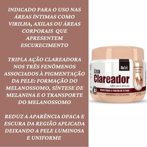 O creme clareador íntimo lisa bio soft é indicado para o uso nas áreas íntimas e corporais que apresentam hiperpigmentação pós- inflamatória onde a pele acaba produzindo mais melanina e escurece a região.
