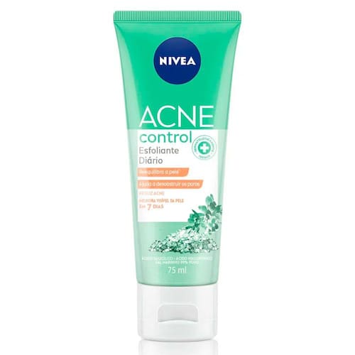 O Esfoliante Facial Nivea Acne Control 75g é ideal para remover impurezas e células mortas, prevenindo o aparecimento de acne e promovendo uma pele mais limpa e saudável. É indicado para todos os tipos de pele, pois possui fórmula suave que não agride a pele. Além disso, conta com textura cremosa e contém pequenas partículas esfoliantes. Contém ainda, ácido salicílico, um ingrediente conhecido por ajudar a prevenir o aparecimento de acne e reduzir a oleosidade da pele e extrato de magnólia, que tem propriedades calmantes e anti-inflamatórias, ajudando a acalmar a pele irritada.