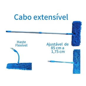 Versátil e ergonômico, ideal para facilitar a limpeza do dia a dia Cabo extensível de 85cm a 175cm, ajustável conforme sua necessidade Haste flexível que alcança facilmente embaixo de móveis e áreas de difícil acesso Cabo com furo para pendurar, ajudando na organização do ambiente Base ampla de 41x13cm, cobrindo mais área a cada movimento Sistema de refil com troca rápida para máxima eficiência na higienização Compatível com diversos tipos de piso: madeira, mármore, porcelanato, cerâmica e revestimentos sintéticos