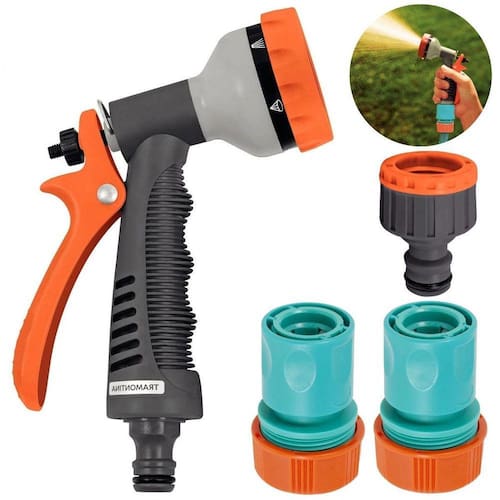 Esguicho hidropistola 6 jatos mangueira jardim + engate rápido 3/4 e 5/8 + bico torneira engate rápido tramontina Esguicho hidropistola 6 jatos mangueira jardim para engate rápido Para deixar suas plantas e flores muito mais saudáveis e bem irrigadas, conte com a hidropistola para engate rápido tramontina com multifunção ideal para ser utilizada na jardinagem e para uso doméstico, ela é produzida com materiais de alta qualidade, ela conta com 6 tipos de jato d'água e garante uma irrigação precisa e confiável.