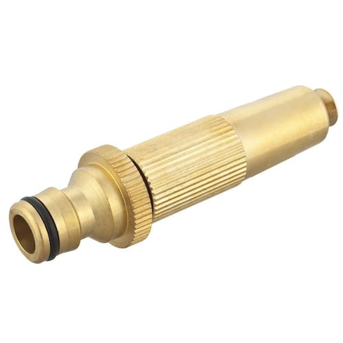 Esse esguicho feito em latão, além de ser super resistente a impactos, possibilita um excelente controle do jato de água através da rosca, que se encontra no meio do corpo do esguicho.
