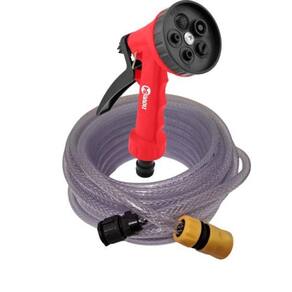 Conteúdo da embalagem: 1 Esguicho plástico jardim 5 funções NOVE54 + Mangueira para jardim, trançada, transparente, 20 m, VONDER - Esguicho para jardim. Indicado para uso doméstico, limpeza de calçadas, veículos e jardinagem. Corpo em plástico ABS de alta resistência e jato múltiplo com 5 posições de ajuste ducha central, jato dirigido, cone, leque e misto . Detalhes técnicos do produto Referência 3196012005 - E CDC legal: 90 dias Massa aproximada peso 0.097 kg Tipo do jato Múltiplo Número de posições de ajuste 5 funções Material do esguicho Plástico Tipo de entrada do esguicho Conector macho para engate rápido 1/2 - Mangueira para jardim, trançada, transparente, 20 m, VONDER Conteúdo da Embalagem: 1 Rolo de mangueira para jardim com 20 metros. Acompanha: 1 conector 3/4, 1 adaptador 3/4 para 1/2 e 1 esguicho plástico. Pronta para uso, acompanha a conexão da torneira e esguicho plástico reto. Indicada para condução de água fria na limpeza e irrigação em jardim. legal: 90 dias + contratual: 3 meses DETALHES TÉCNICOS Material da mangueira:PVC Diâmetro interno:7/16 - 11,1 mm Espessura da parede:1,8 mm Pressão máxima de trabalho:140 lbf/pol Cor da mangueira:Transparente Massa aproximada peso :1,548 kg Marca: Não Informado